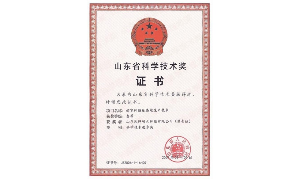 山東省科學技術獎證書